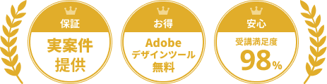 学んだ成果をバナーの実案件制作で発揮しましょう。3案件のご依頼を保証いたします。実務実績があれば、その後のお仕事の獲得がスムーズになります。報酬のお支払いもございます。